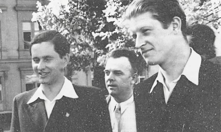 | Пауль Керес, его секундант Александр Толуш и Юрий Авербах, секундант Андрея Лилиенталя. Турнир претендентов. Будапешт, 1950 год. |