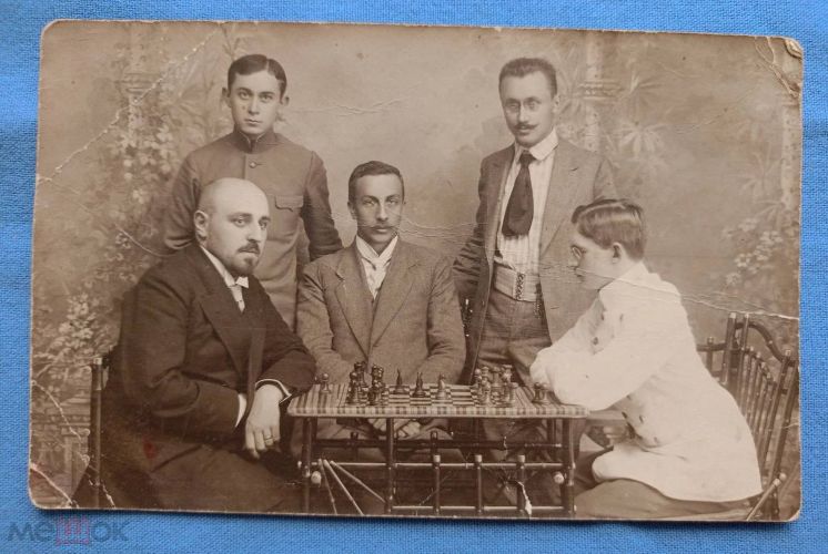 Брат прислал фото (он автожурналист, но если находит интересные шахматные материалы, то присылает их мне), а я никого не узнаю. Разве что человек в очках и с усами похож на Давида Яновского.
