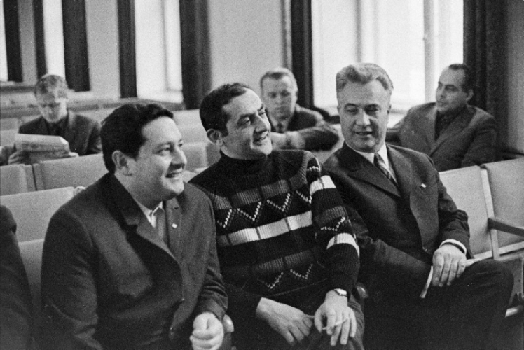 Three cheerful participants of Tallin 1969: Gufeld, Stein & Damjanovic. |