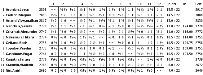 Во-первых, кончено, поздравления Ароняну. Левон продолжает доказывать, что если и станет Чемпионом Мира, то к тому моменту будет уже иметь за плечами список побед в турнирах разного рода, подобающих этому титулу.
