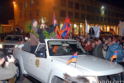 В своем архиве я нашел несколько фоток с чествования предыдущей победы сборной Армении (дрезденская олимпиада, 2008 г.). Небольшое уточнение: у Оперы сборную чествовали в 2006-м, а в 2008-м все было организовано в Спортивно-концертном комплексе Еревана.