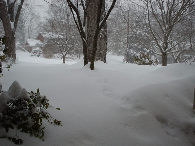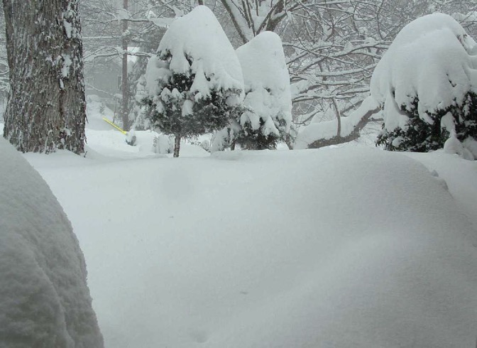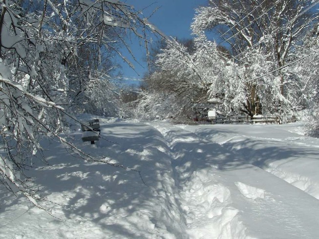 Бывало, что в такой снег сидели несколько дней без электричества. Дом тепло совсем не держит, камином его не согреть, гаражная дверь (широкий, тяжелый железный занавес) без электричества не поднимается. У меня и в более молодые годы не хватало сил его вручную поднять. Даже если снег с драйвея быстро убрать, пока он не заледенел, выехать в цивилизацию все равно проблематично.