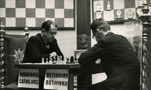 1. Капабланка и Ботвинник за шахматной доской.