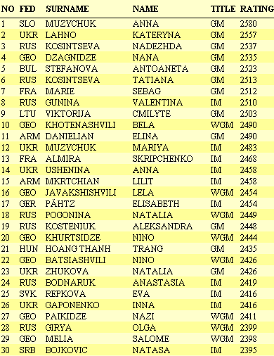 The 13th Individual European Chess Championship for women is qualification event for the next World Cup. According to FIDE regulations and the decision of the ECU Board, 14 players will qualify. |