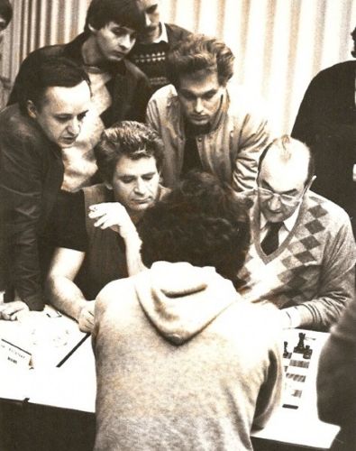 Lugano Open 1984: неутомимый Виктор Корчной (R.I.P.) анализирует партию вместе с неукротимым международным мастером Джеем Уайтхедом (R.I.P.), стоящим спиной к камере. Посмотрите на этот звёздный состав! Рядом с Корчным сидит экс-чемпион мира Борис Спасский. Рядом со Спасским — Флорин Георгиу. Позади Спасского и Корчного находится Сергей Кудрин, который получил звание гроссмейстера в 1984 году; в том же году он достиг своего пикового рейтинга — 32-е место в мире по Эло (делил его с другими).