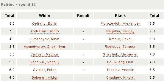 | В 12 туре Гельфанд проиграл Андрейкину |