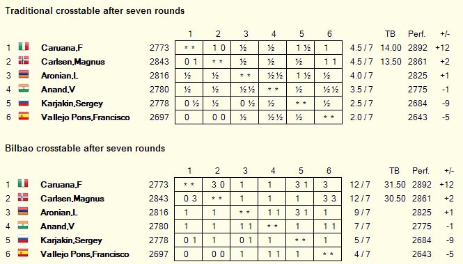 Карлсен-Вальехо 0,5:0,5, Аронян-Ананд 1:0. |