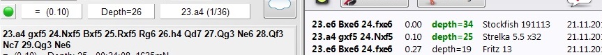 Мои компы держат позицию за черных. И я не по 30 секунд над ходом их думать заставлял, а порой по 4-5 часов! Да, бывает, что программы тупят, если их не направит в нужное русло человек. Но здесь, по-моему, не совсем тот случай. Матовой атаки нет! На выходе - несколько вариантов с переходом в эндшпили, которым и надо дать оценку. А ведь даже ЧессБейсовцы иногда ошибаются или не совсем точны...