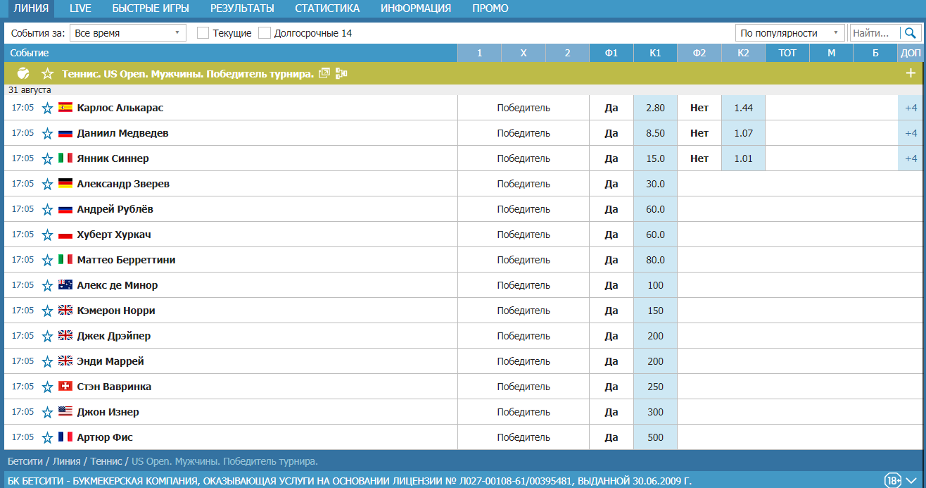 US Open (м).Турнирная сетка