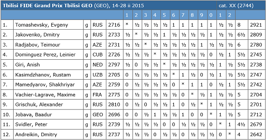 Перерыв до мая. Тбилиси, как кажется, показал, что человек десять из двенадцати участников могут одновременно оказаться не в форме. Что покажет Ханты-Мансийск, никому неведомо. Всё же, два месяца - срок. Фавориты известны, у кого какие реальные (или нереальные) шансы, понятно ("математические" шансы на второе место в серии есть даже у Домингеса).