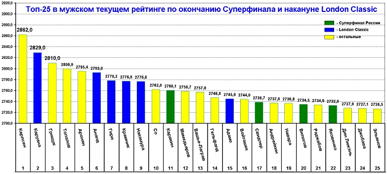 Общее впечатление от Суперфинала кисловатое... Такое ощущение, что Крамник и Грищук набирали бы тут от +4. Надо как-то все-таки РШФ стремиться обеспечить сильнейший состав Суперфинала. А то такими темпами через пару лет и семисотников в Суперфинале может не оказаться. В том году турнир был интереснее, зрелищнее и представительнее (Крамник + Андрейкин > Морозевич + Яковенко). Хотя в этом, быть может, и поплотнее. |