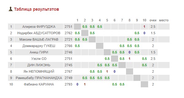 Пока я подробно смотрел только партию Каруана - Фирузджа. Могу сказать, что Фирузджа на секундах играл просто блестяще - но он вообще известен вдохновенной игрой в цейтнотах (если только это не эндшпиль). Особенно потрясает великолепный по своему хладнокровию ход 60...Bxf2!!, в то время как на флажке "кто угодно" сыграл бы 60...Rb8.