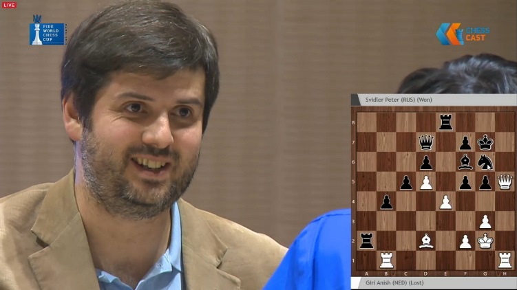 | Обережний герой: Гири весь турнир играл академично, а здесь не выдержал, отдал весь пешечный фланг и пошёл в гусарскую атаку | В принципе он может проиграть потому, что несмотря на мастерство не учел важнейший философский принцип игры в бенони белыми: не дергайся, не выпускай из клещей... медленно и неуклонно надвигайся пешками в центре, если надвижение пешек в центре невозможно? все равно не дергайся и не давай дышать черным - пространственный перевес себя может проявить и в окончании, а если не проявит? ну ничья... бывает.