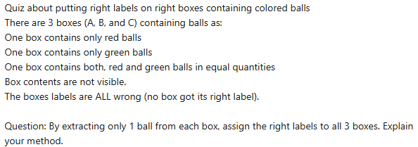 Есть 3 урны - в одной 2 белых шара, в другой 2 чёрных, в 3-ей белый и чёрный. на каждой урне табличак - ББ, ЧЧ, БЧ. но все таблички неверно указывают содержимое урн. Разрешается вынуть шар из ллюбой урны, не заглядывая в неё, а после этого возвратить в урну. Какое наименьшее число извлечений потребуется, чтобы определить состaв всех урн.