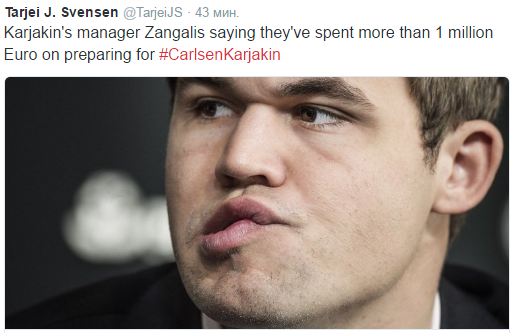Media have approached me asking for #CarlsenKarjakin chances. I didn't respond, but after a good thought I now give Karjakin approx. 36.8%. |
