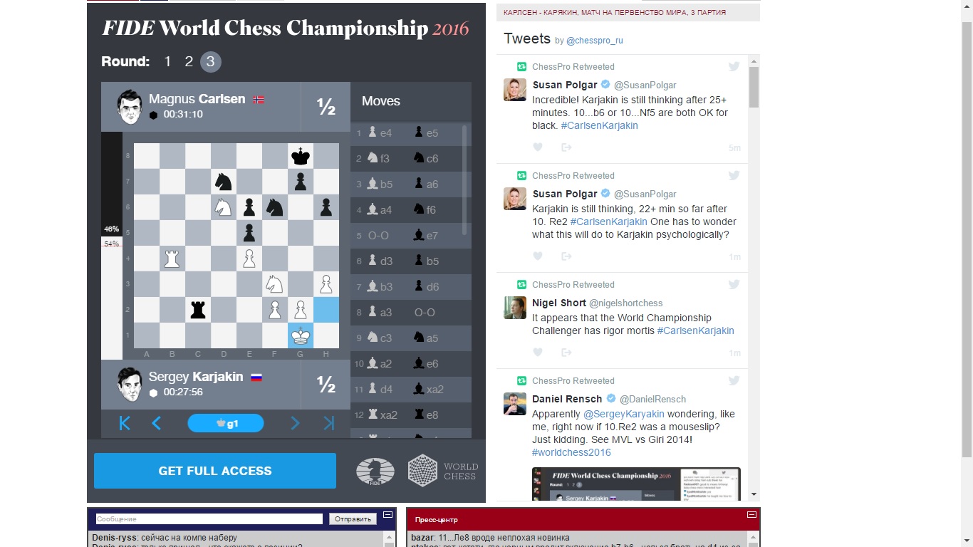 итак.... сегодня первый ход Магнуса... голосую за конь f3!
