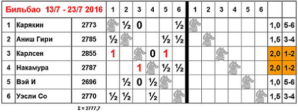 "Оказывается, что" рейтинг Накамуры уже около двух лет стабильно выше, чем у Карякина. Иногда (как год назад) намного выше (разница более 60), иногда (как сейчас, после двух значимых успехов Карякина и относительных неудач Наки) немного выше (всего на 20). Тем не менее - все время выше. Так что, даже исходя из этого фактора, противостояние Карлсена и Накамуры (при условии оптимальной игры последнего) - более конкурентное, чем то, которое мы (к сожалению) получили. |