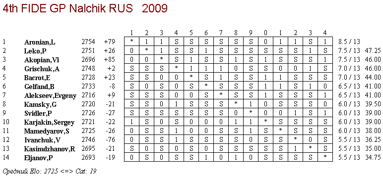 начинающийся завтра четвертый этап Гран-При ФИДЕ в Нальчике следующим попадает в классификацию CLASS-Tournaments 2009