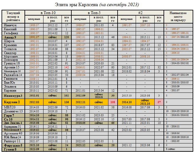 В нынешней топ-десятке только один Ананд представляет игроков "до-Карлсеновской" эры.