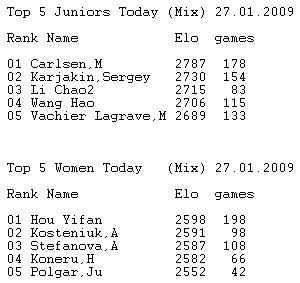 Текущий годовой перфоманс Топалова на 20 января = 2812 Elo, это пока лучший годовой пероманс за то недолгое время, что существует эта классификация.