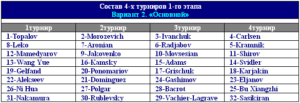 Состав турниров 1-го этапа определяется по следующей таблице: