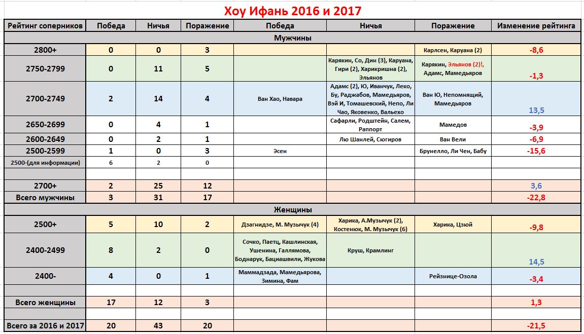 Здесь, во-первых, 14 месяцев. Во-вторых, за это время - не считая матча с Марией Музычук - две(!!) победы над дамами 2500+ (при двух поражениях). Против 2550+ - ни одной. С полуфиналистками этого чемпионата