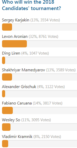 Буду "болеть" в начале турнира за Грищука, Каруану и Дин Лиженя. За остальных не то, чтобы не верю ( но и это тоже) но болеть вначале не интересно. Потом, конечно, турнир подскажет интригу и выбрать "лошадь " будет проще |