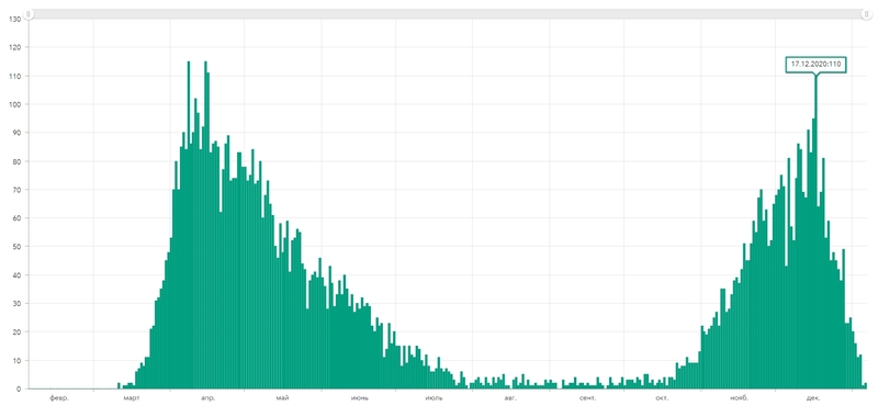 Шведы за 17 декабря досчитали до 110 смертей, это уже вполне сопоставимо с весенними рекордами - было всего три дня, когда умерло больше 110 человек.
