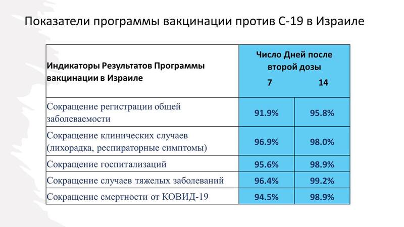 министерство здравоохранения Израиля опубликовало результаты исследования эффективности вакцины Pfizer спустя две недели после полной вакцинации, и цифры превосходят все ожидания.