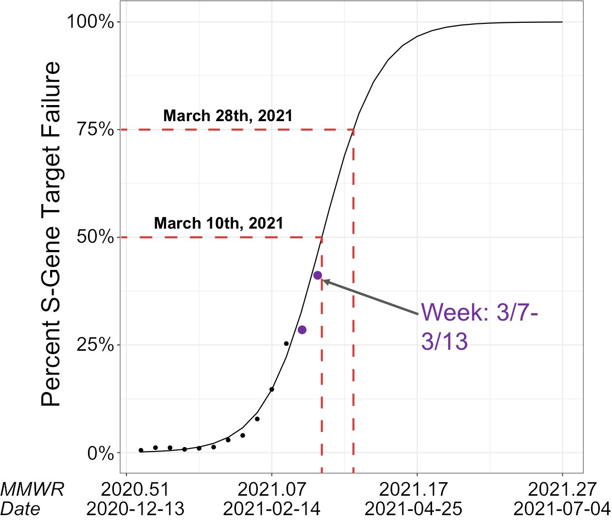 Для распространенности британского штамма наилучшее, что видел, это процент SGTF, и определение сиквенсированием процента сколько из них B.1.1.7. |