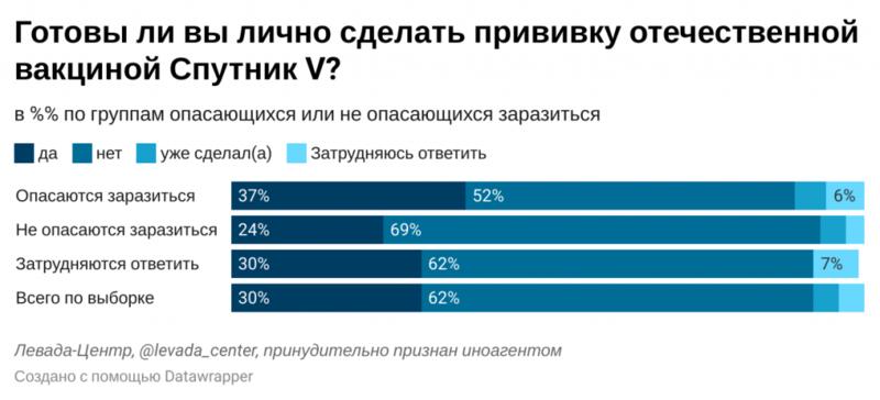 Вообще, в РФ немного парадоксальная ситуация. Большинство даже из тех, кто сам боится заразиться, прививку еще сильнее боятся делать. Тут пропаганда провалилась