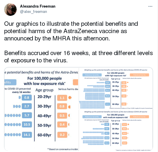 При том же мнении осталась и ЕМА: The benefits of the vaccine continue to outweigh the risks for people who receive it |