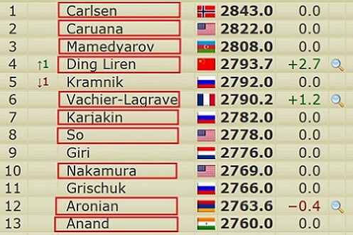 Ставки BWIN для сравнения: Магнус 3.00, Каруана 7.00, Максим 8.00, Мамедьяров 9.00, Карякин 9.00, Аронян 11.00, Со 13.00, Лирен 13.00, Накамура 15.00, Ананд 15.00. |