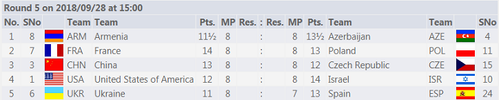 Иран долго шел на равных с чехами, но первая доска (GM Maghsoodloo) сделал неуверенный ход и рассыпался ещё через 9.