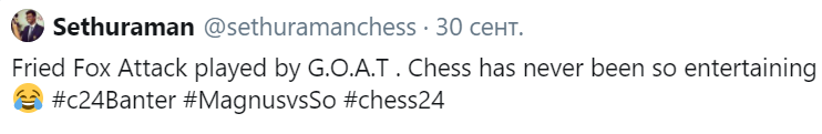 | (И сравните с острой реакцией Со днем раньше, на проигрыш его команды (и свой собственный) в финале ProChess лиги (где на кону стояли куда меньшие деньги, между прочим)). |