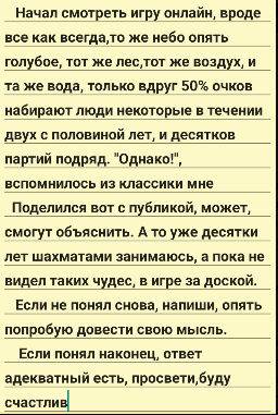 С последним я сыграл достаточно партий, чтобы сделать предположение, что к онлайну у него отношение не очень серьезное. Выиграть он, конечно, тоже не дурак, но особой заботы о рейтинге за ним не заметно :) |