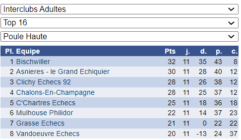Вот здесь можно увидеть итоги турнира: http://www.echecs.asso.fr/Equipes.aspx?Groupe=2