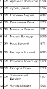 | Насколько мне известно, если Карякин играть не будет, то Дубов играть будет. Питерцы скорее всего тоже. |