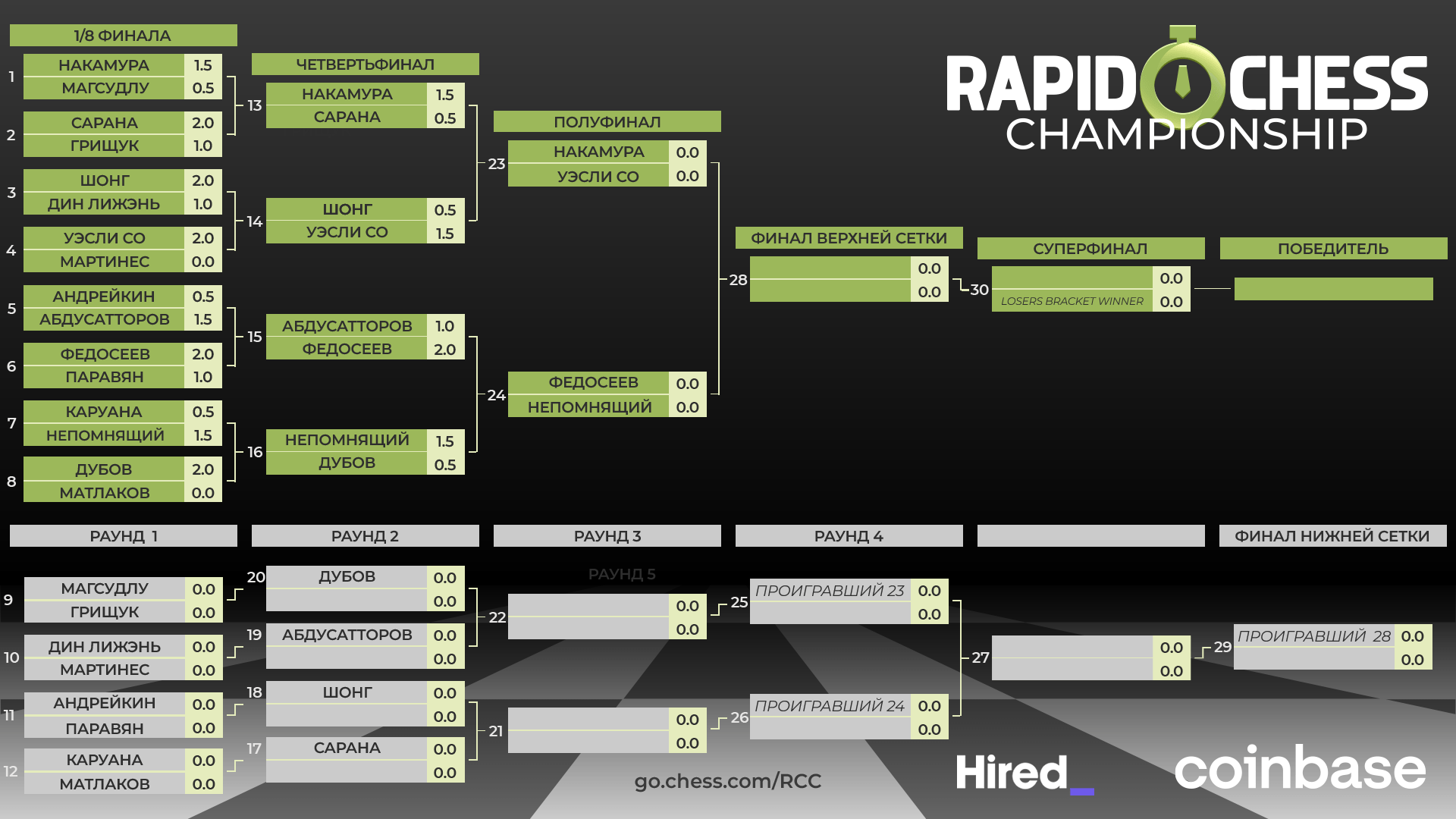 Оказывается, его пригласили (вместе с Дин Лижэнем, Непомнящим и Магсудлу) в начавшиеся сегодня Финалы Чесском-Рапид-Чемпионата (16 человек, нокаут с двойным выбыванием). Андрейкина он уже отправил в нижнюю корзину, кажется, отправит туда и Федосеева.