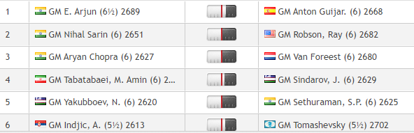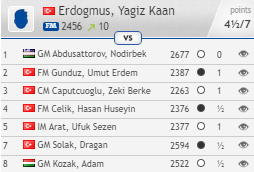 | Сычев-Гукеш 1/2-1/2,Абдусаттаров-Лобанов 1-0. |