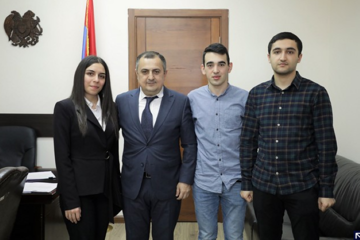 Заместитель министра образования, науки, культуры и спорта РА Карен Гилоян сегодня принял гроссмейстеров Шанта Сарксяна, Айка Мартиросяна и международного женского мастера Мариам Мкртчян.