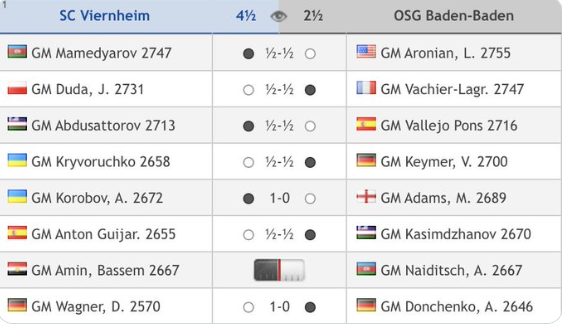 Результаты 1 тура. Гельфанд - Эригайси 0-1, ван Форест - Гукеш 0-1, Свидлер - Мишра, Каймер - Гранделиус ничьи