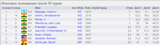 Федосеев победой в последнем туре добился дележа 1 места с тремя индийцами. После чего победил в плейофф и выиграл турнир.