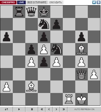 The clash of the veterans Gelfand vs Svidler. 28.Bc2 Kd8 29.Bxe7+ Kc7 was the game continuation. 29.Bxe7 Kxe7 30.Qh4+ Ke8 31.Bc2 is inhuman! What a round!