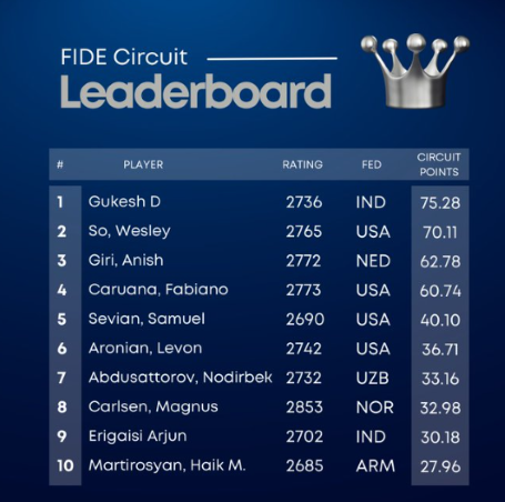 Почитатель: Быстрая ничья в последнем туре чемпионата Азии с Сулейменовым (уже имевим путевку в Кубок мира) принесла Ш.Вохидову титул континентального чемпиона. Борьба за остальные три выходящих места была нешуточная, Эригайси победил, но (по-моему) для выхода ему не хватит в СРО самой малости.
