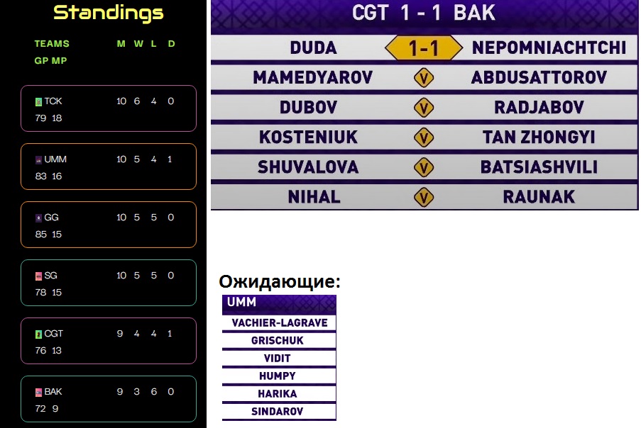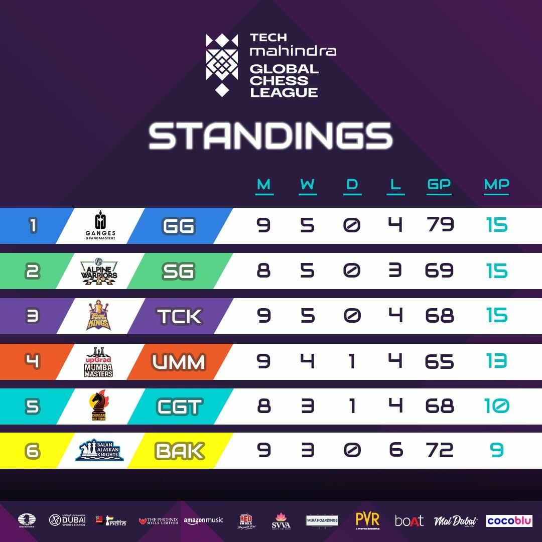 В последнем туре команда Chingari Gulf Titans в случае победы (даже с минимальным счётом) имеет возможность вытеснить со второго места команду upGrad Mumba Masters: