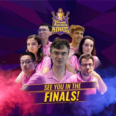 The big guys pose with the #GlobalChessLeague Champions Trophy!