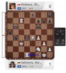 | Участники турниров претендентов: Абасов - минус 13 очков рейтинга, Салимова - плюс 13 очков рейтинга. Костенюк неожиданно воспряла и выиграла три последние партии. |