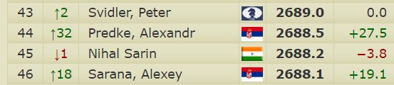 Да, Сербия впечатлила, молодцы ребята. Уже в топ-50, до 2700 недалеко.