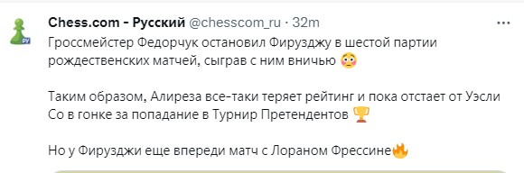 Может Фирудже, в целом, понравилось так играть и теперь цель - обойти Карлсена |